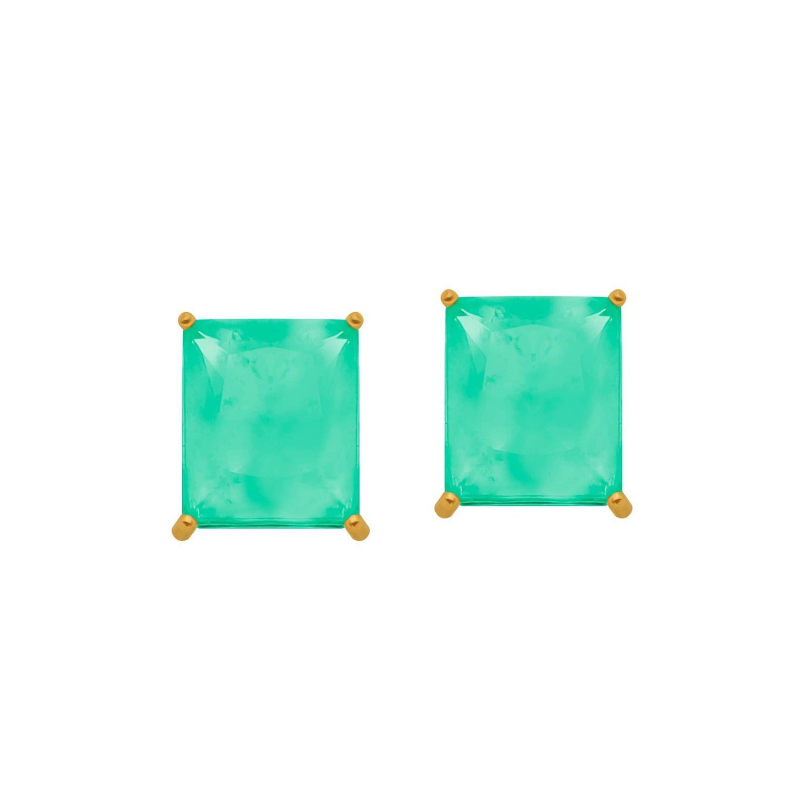Brinco Dourado de Pedra Retangular Verde